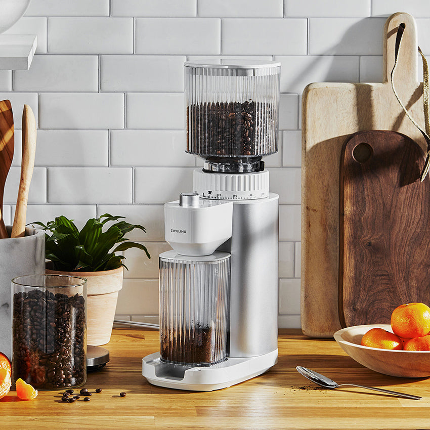 The Zwilling Enfinigy coffee grinder is a kitchen appliance made of a high-quality stainless steel conical grinder. This allows you to gently grind coffee beans so that the coffee retains its full flavour. This allows you to grind your coffee finely adjusted to the bean and preparation method, such as French press, hand filter or espresso. Naturally, the electric coffee grinder is compatible with the Zwilling Enfinigy Drip Coffee Maker. The design is made by Milan-based Matteo Thun & Antonio Rodriguez.