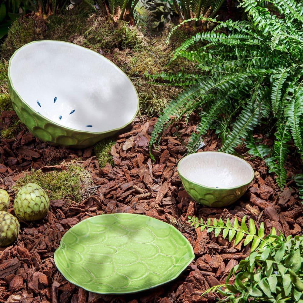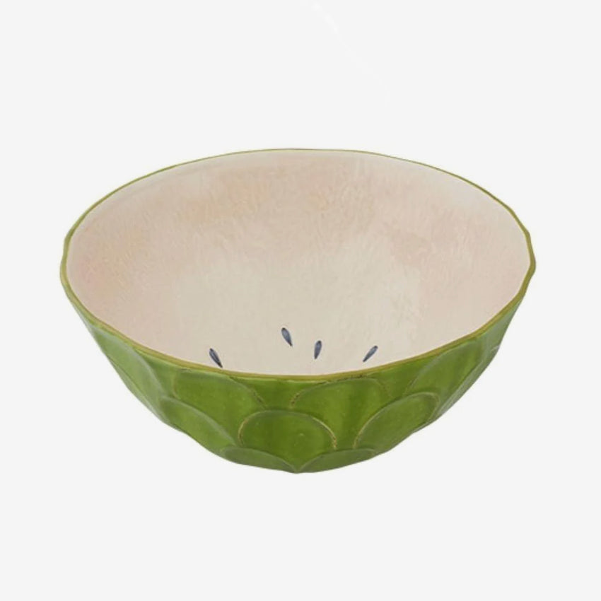 Bordallo Pinheiro is synonymous of Portuguese excellence and exquisite craftsmanship, this beautiful piece is no exception of their craftsmanship. This annona-shaped bowl is perfect for your delicious summer salads outdoors to enjoy the sun and the fresh smell of flowers.