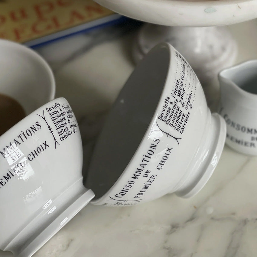 Imagine yourself at a cozy Parisian café, cradling this delightful Pillivuyt bowl in your hands. Fashioned from premium French porcelain and embellished with nostalgic vintage bistro menus, it's your ticket to those magical moments when life slows down and coffee tastes like pure bliss.