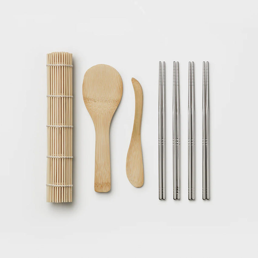Discover the Essential Kit for Sushi Nights, disguised as an elegant book-like box. Once opening it, you will find all the essentials you need for hosting a sushi night with friends and family and master the sushi making skill!