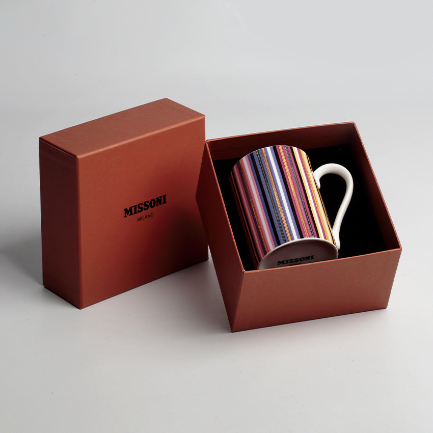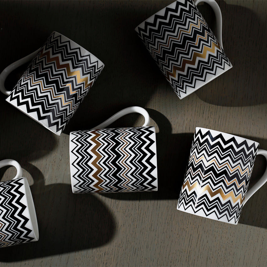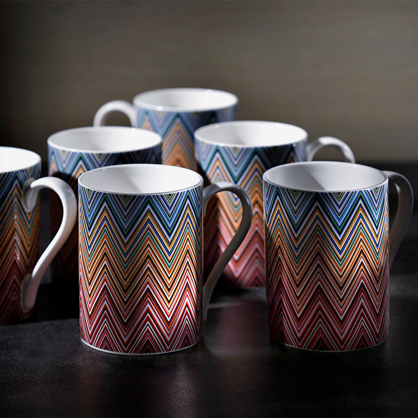 The Missoni Home Dinnerware Mug provides an elegant solution to sipping in style. Boasting an array of colours, the classic lined pattern, and chevron pattern are all well-known elements of Missoni. This collection of mugs offers a sophisticated yet playful way to savour your go-to drink. With eye-catching hues and signature designs, this mug is sure to be a talking point in any setting.