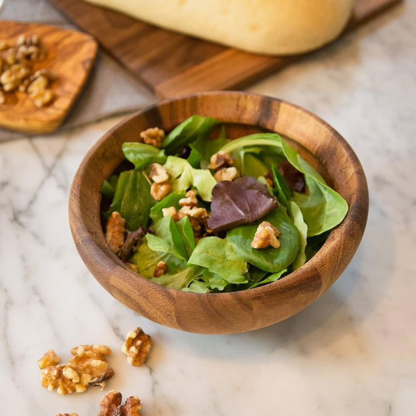 Crafted from quality Acacia wood, this stunning small bowl is perfect for serving your salads for your guests. Elevate your mealtime and table aesthetic when receiving with this bowl, sure to add a rustic yet sophisticated touch to your table!