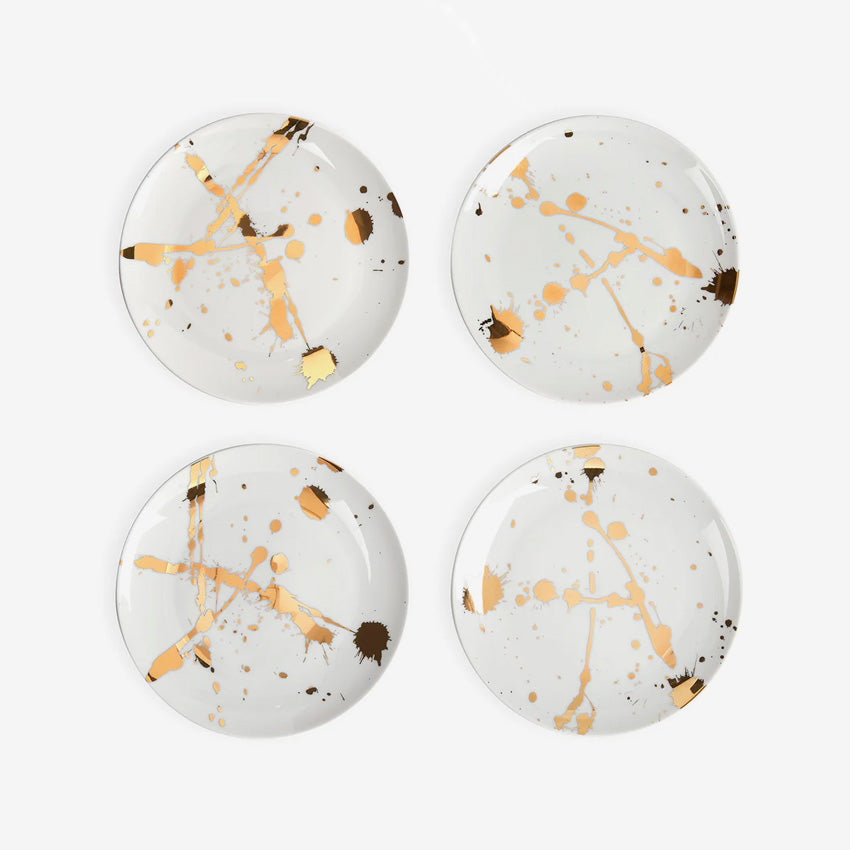 This set of plates is named after the temperature at which gold melts and becomes liquid splendor: 1948°F. Featuring a white background splattered in gold, it’s the ideal dish to serve your sophisticated canapés.