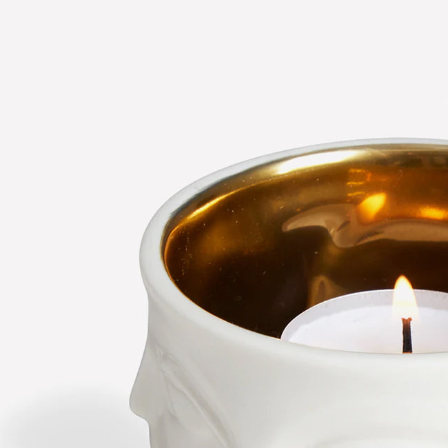 Intricate designs, practicality and artistic flair would be the best words to describe this Jonathan Adler Muse Votive Holder. This Votive holder displays the iconic multifaced design from the collection that is inspired by Dora Maar famously known as Pablo Picasso’s lover and muse. This design holds a golden interior that helps reflect your candlelight inside and creates a stunning warm glow in your home to set the ambiance.
