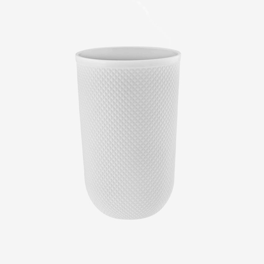 This porcelain Vista Alegre Maya Vase features a unique combination of matte and glossy finishes, making it a standout piece in the Maya collection. Versatility is the hallmark of this collection, with a range of futuristic tones that tie each piece together. The designs draw inspiration from timeless Bicos glass goblets from Vista Alegre, incorporating 3D ornaments and textures for an elegant and unexpected touch. Handcrafted in Portugal, the Maya vase is perfect for any occasion.
