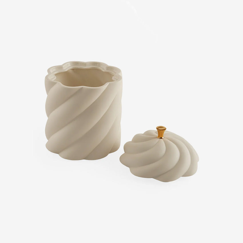 Featuring a sculptural, high-fired unglazed porcelain rope, the Geneva Bowl takes inspiration from nautical motifs. Its interior is lined with shimmering gold, adding a touch of luxury. Perfect for storing small items or snacks and pairs beautifully with the Geneva Bowl!