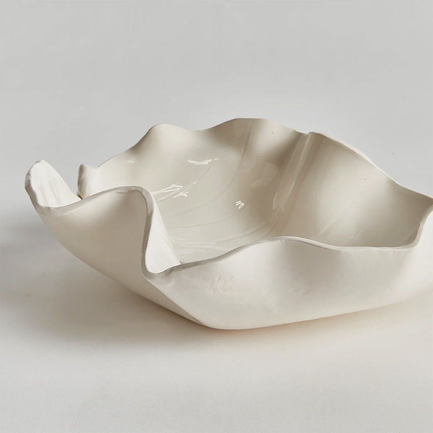 The Moricento Leaf Sculpture showcases intricate hand-sculpted details crafted by skilled Italian artisans in Tuscany. Featuring a timeless design with a gentle white glaze, this piece reflects exceptional craftsmanship handed down through generations. Its impressive size makes it a striking centerpiece for your dining table, kitchen island, or mantel.