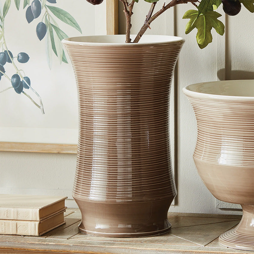 In a classic Italian shape and more modern linear graphic pattern, the Tremezzo Vase is a fresh take on Italian artistry. Made in Tuscany, using craftsmanship passed down through generations, each piece is a true original. In grand scale and neutral tone, a dynamic centerpiece for feature table, kitchen island or mantel.