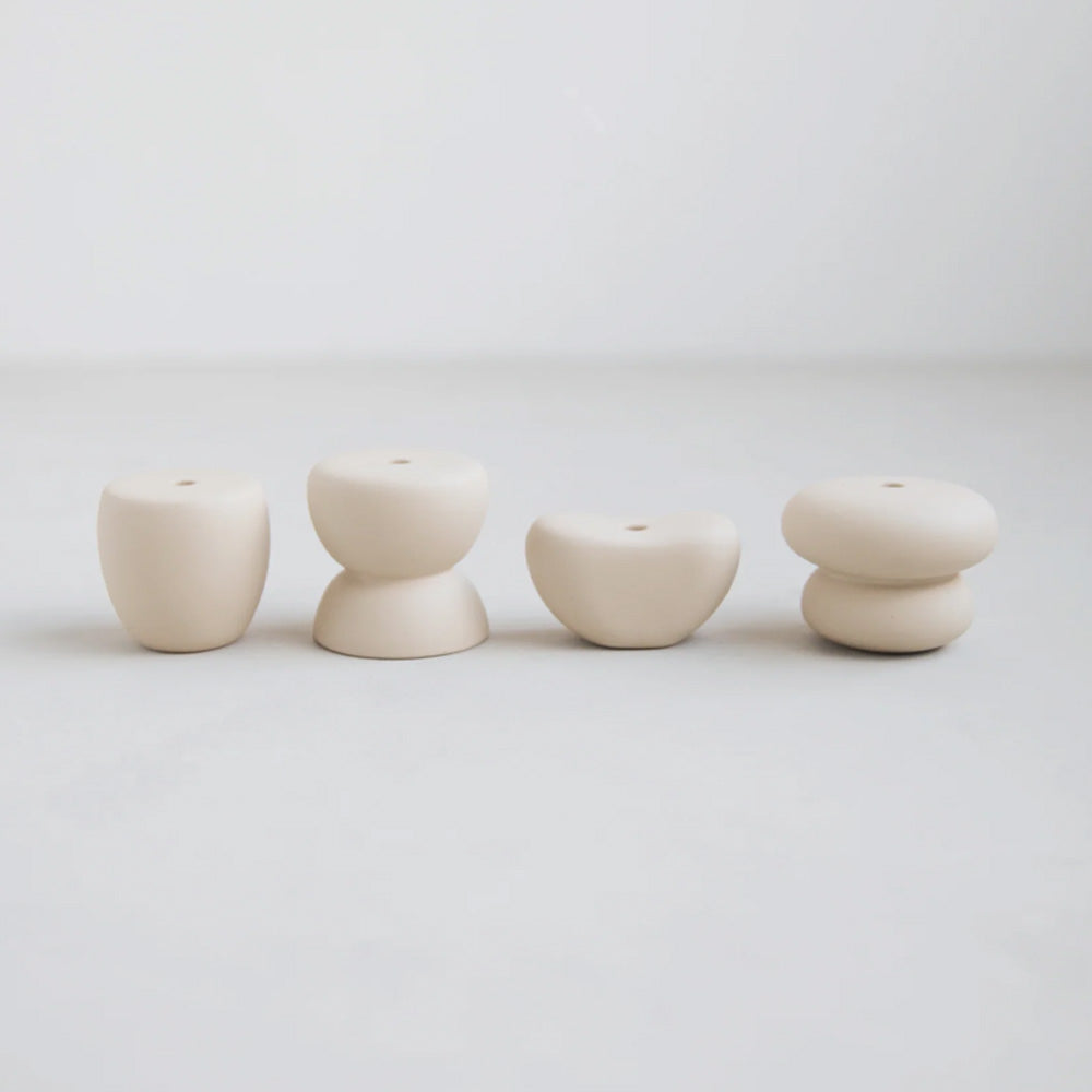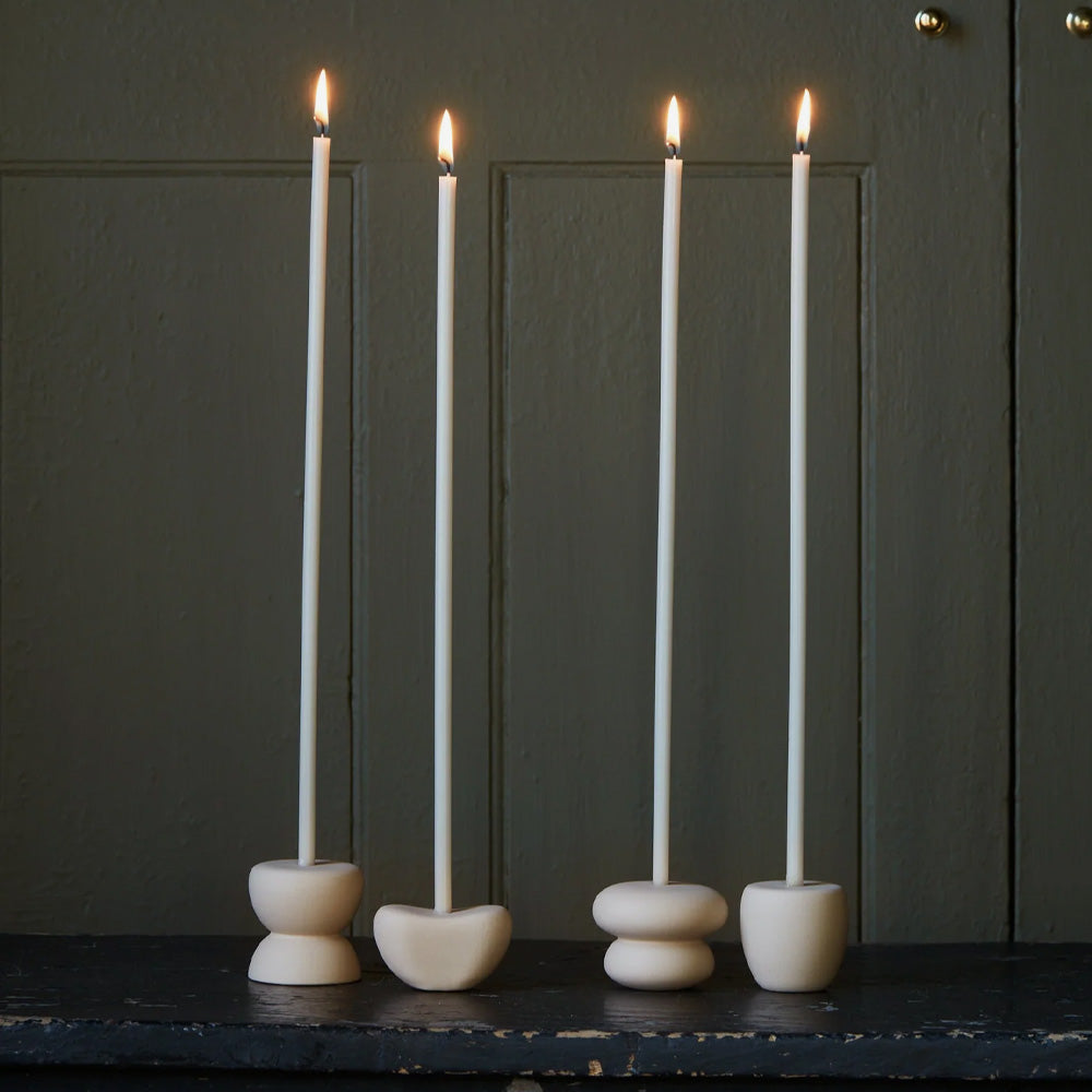 Inspired by nature's gentle artistry, this ceramic candle holder captures the serene beauty of smooth, weathered stones with its organic silhouette and understated matte finish. Its thoughtfully proportioned design cradles Long Stem Candles with elegant grace, whether showcased as a solitary accent or arranged in an eye-catching cluster.