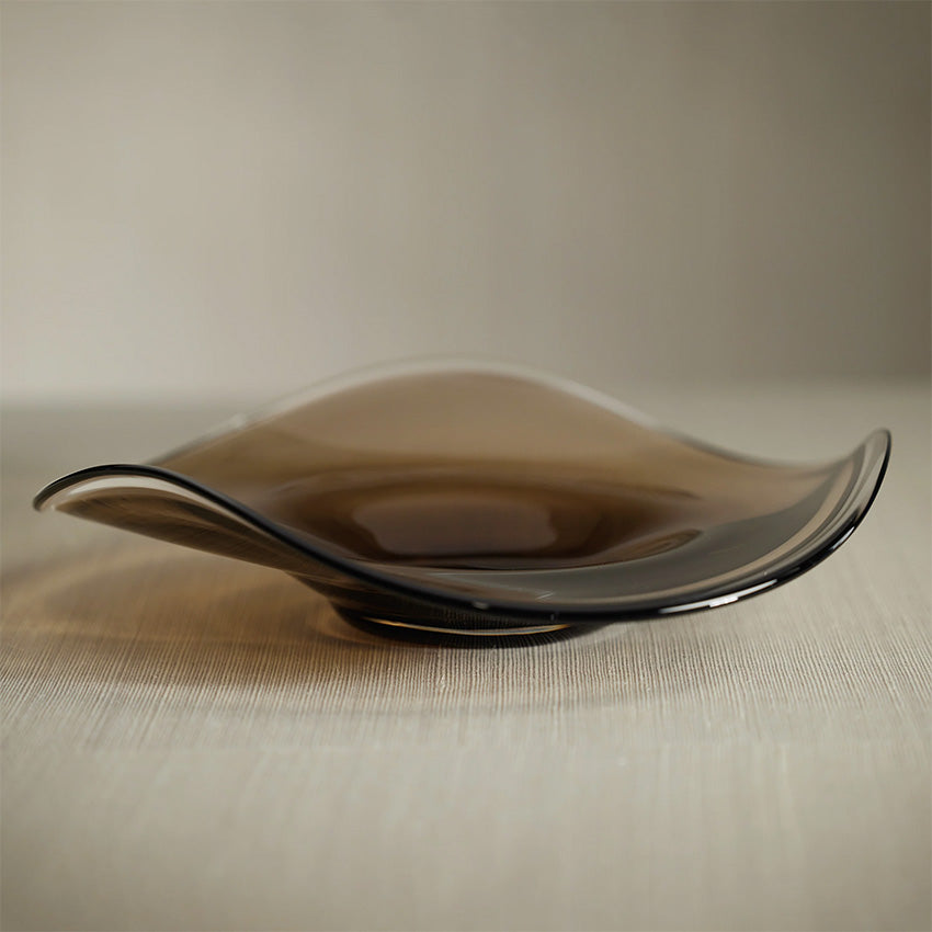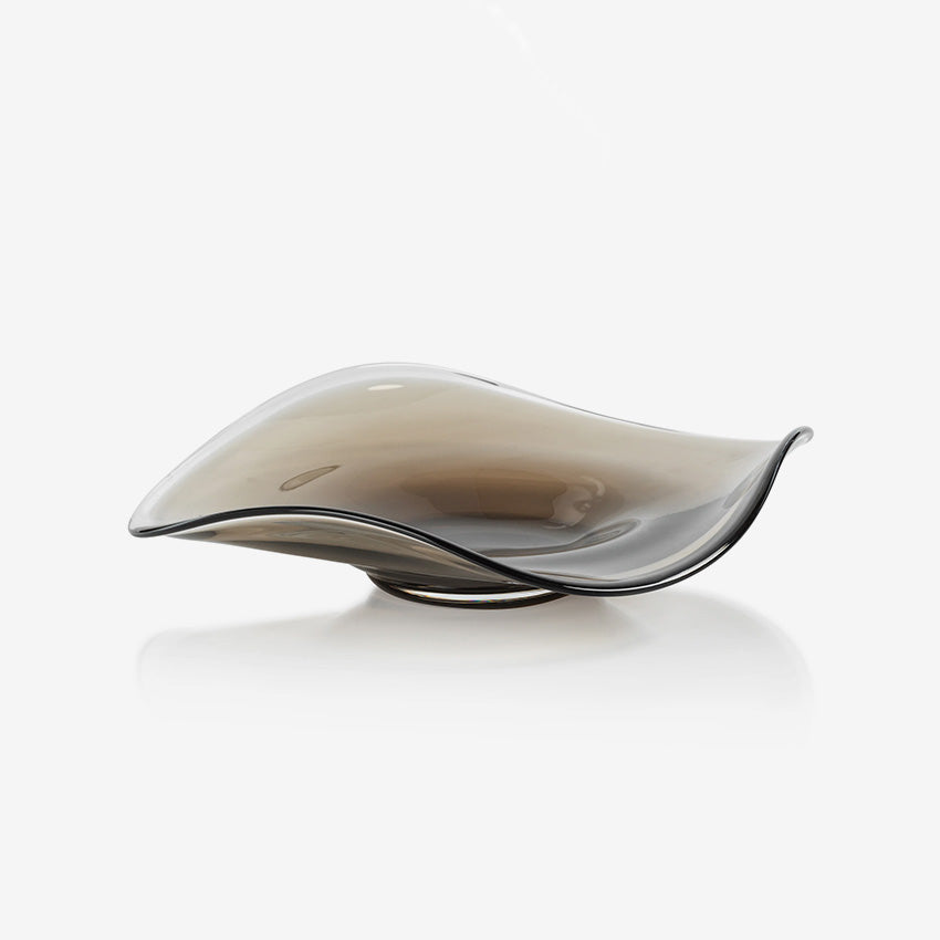 Bring a splash of artistic flair to your space with this stunning Tropezana Wave Glass Bowl. Its gracefully undulating edges and warm taupe hue create a modern silhouette. Whether you're showcasing it as a standalone statement piece or using it to corral everyday items, this beautiful crystal-clear rim adds a sophisticated touch that catches light beautifully.