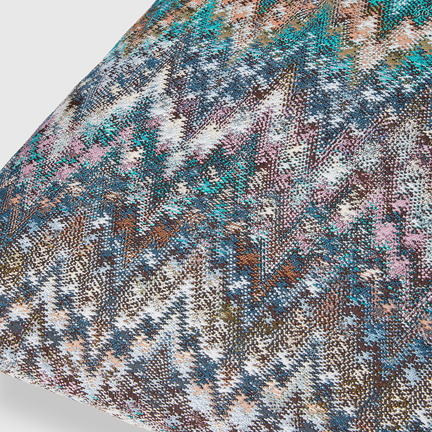 Un motif à chevrons complexe caractérise la surface du coussin Parrot, orné de zigzags ombrés créant un effet quasi illusoire. Avec ses différentes variations de couleurs, ce coussin Missoni Home met en valeur le savoir-faire textile de la maison.