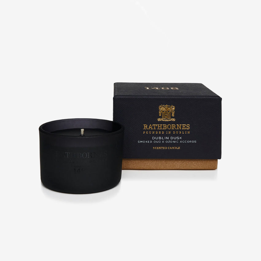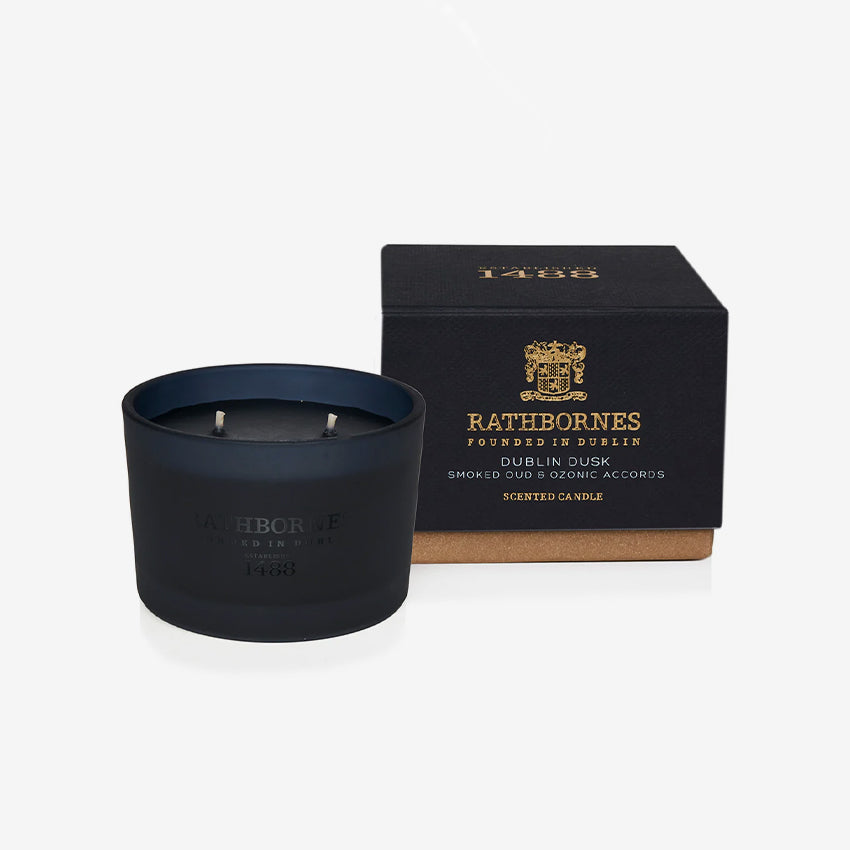 Bougie parfumée Rathbornes 1488 | Dublin Dusk (accords de oud fumé et d'ozone)
